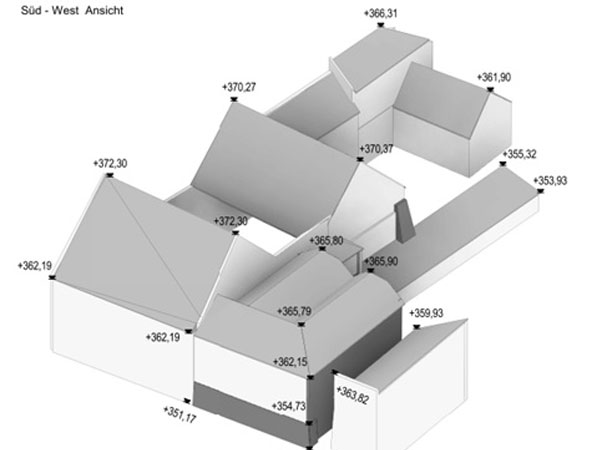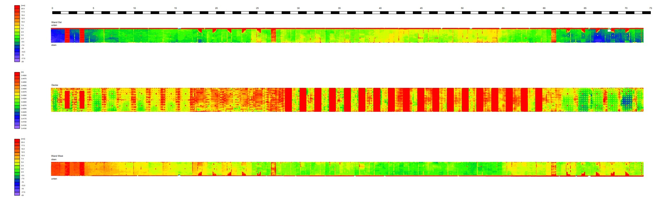 Beim 3D-Laserscanning werden Objekte mithilfe modernster Lasertechnologie erfasst und in einer 3D-Punktwolke abgebildet. Die Punktdichte kann je nach Anforderung so eingestellt werden, dass Genauigkeiten im Millimeterbereich möglich sind. Aus diesen Daten entstehen Gebäudemodelle, Fassadenpläne, Grundrisse und Schnitte. Darüber hinaus sind auch weiterführende Auswertungen, wie etwa Abstands- oder Deformationsanalysen, möglich.