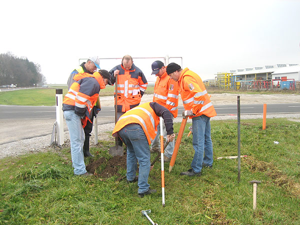 Kontrolle vorhandener Grenzzeichen sowie Wiederherstellung und Stabilisierung verlorener Grenzzeichen.